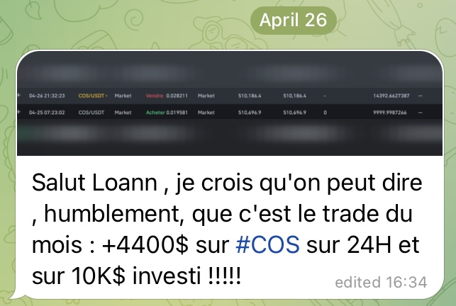 De plus, tu peux me poser tes questions sur Telegram à tout moment et je suis réactif.